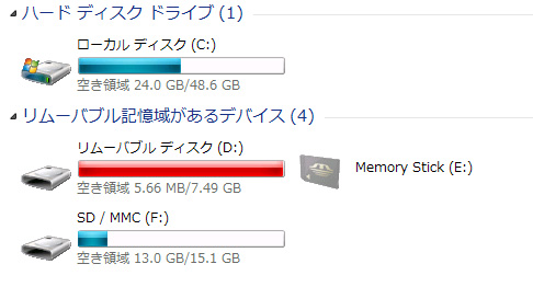 なんですが、やっぱ4GBだとちょっとキャッシュ領域としては足りない感じ。で、まあ最近SDHCカードが安いんで、16GBのやつを買ってきてデータはそっちに逃がしてUSBメモリは完全にReadyBoost専用にしようと思ったんですよ。